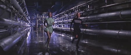 Logan’s Run ist an sich ein düsteres Zukunftskapitel, ein Science Fiction Thriller, der durchaus zum Nachdenken anregen könnte. Könnte, denn der Film von Michael Anderson kann kaum Ernst genommen werden, dafür sorgen die etwas antiquiert scheinenden Effekte wie die gar liebos gemachten und wenig detaillreichen Miniaturaufnahmen der Glaskuppelstadt, die zischenden Waffeneffekte, das ein oder ander Matte Painting und natürlich Box, der Gefrierroboter, der aussieht wie ein billige Mischung aus Blechkasper aus Wizard of Oz und C3PO. Aber auch das gar überspitzte Spiel der Hauptdarsteller (Michael York ist nur mit einiger Überwindung zu geniessen) trägt das seinige dazu bei, dass Logan’ Run manchmal wirkt als sei unter Zeitdruck so manches nur hingeschluddert worden.